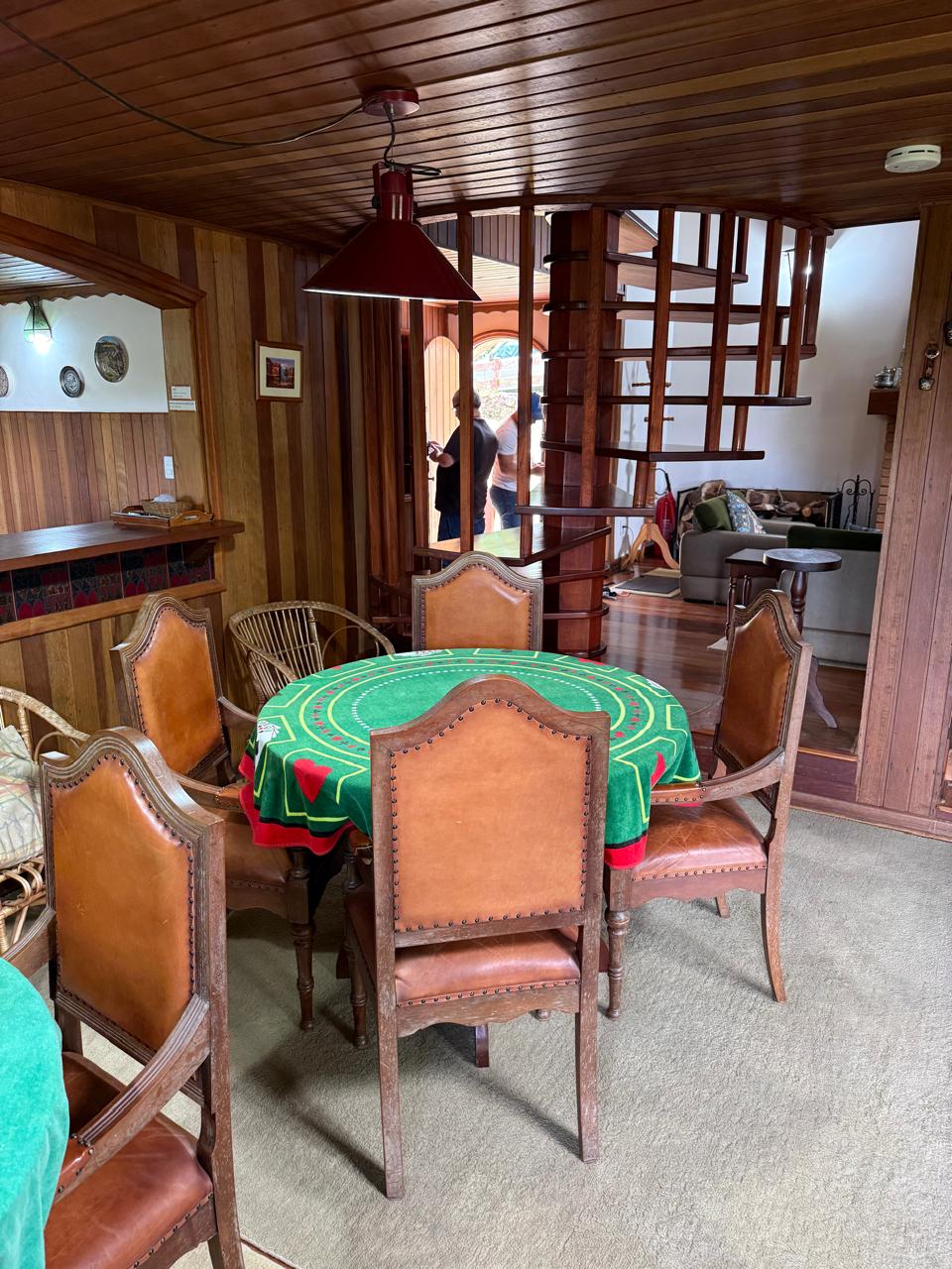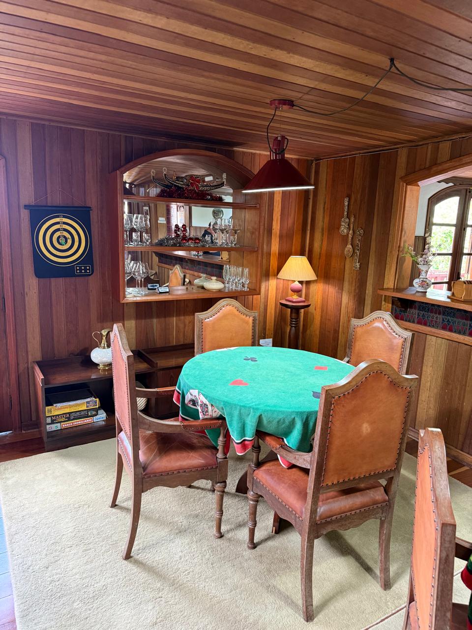 No andar térreo, você encontrará quatro salas espaçosas, cada uma oferecendo um ambiente acolhedor para desfrutar de momentos especiais. Desde a sala de TV com lareira até a sala de jogos com duas mesas para carteado, há espaço para todos os gostos. A sala de jantar, com mesa para até 10 lugares, é perfeita para refeições em família ou entre amigos. E não se esqueça da grande varanda com churrasqueira, onde você pode preparar deliciosas refeições ao ar livre.