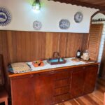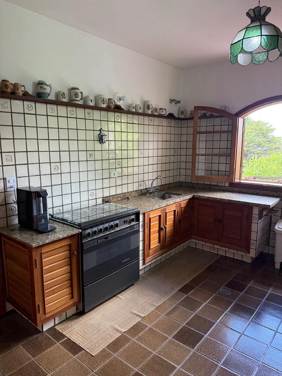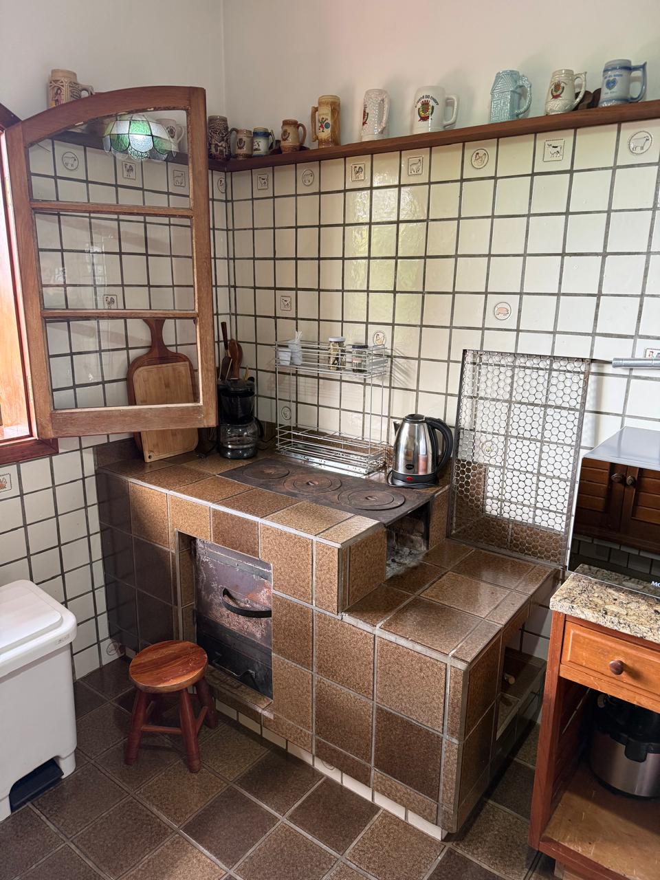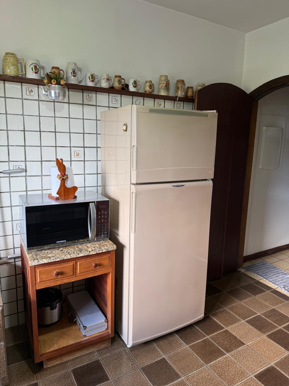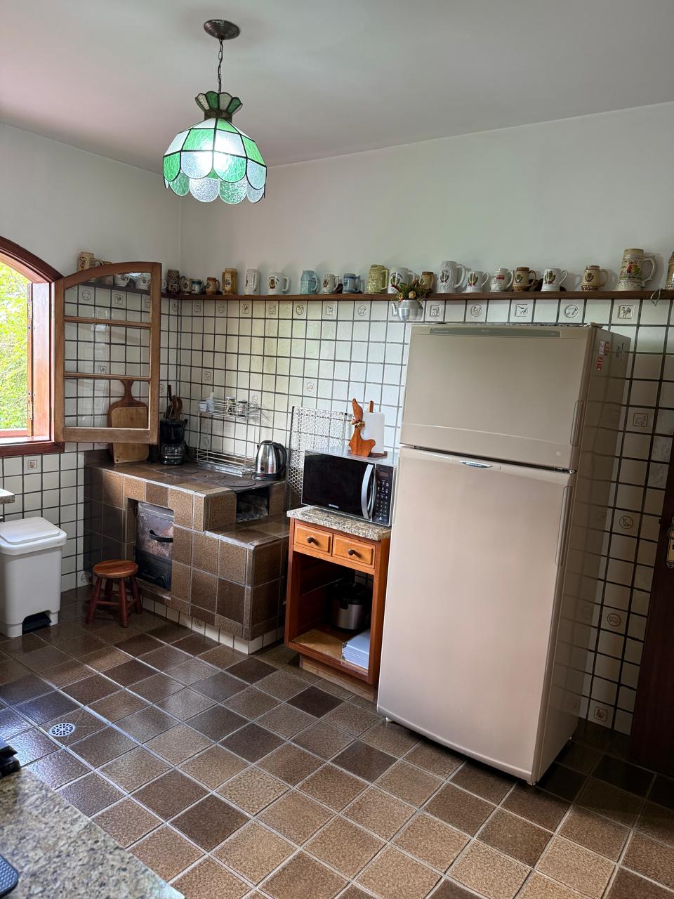 A cozinha totalmente equipada é um sonho para os amantes da culinária, com fogão a gás e forno, fogão a lenha, micro-ondas e todos os utensílios necessários. A área de serviço conectada à cozinha oferece conveniências adicionais, incluindo geladeira, freezer vertical e máquina de lavar roupas.