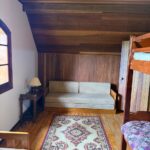 No andar de cima, os confortáveis quartos garantem noites tranquilas de sono. Uma suíte com cama de casal e dois quartos com cama de casal, com opção de uma cama de solteiro adicional, proporcionam conforto para todos os hóspedes. Além disso, há um quarto grande com beliche e duas camas de solteiro. O mezanino oferece uma vista excepcional das salas do andar inferior.